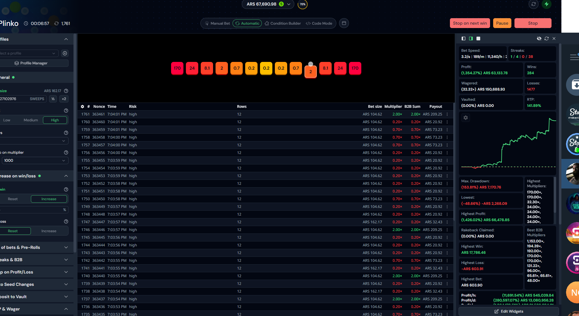No other settings, just adjusting bet size and B2B streak target by feel.