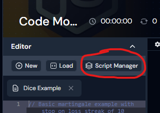 In Code Mode there’s the Script Manager, where you can find all scripts.