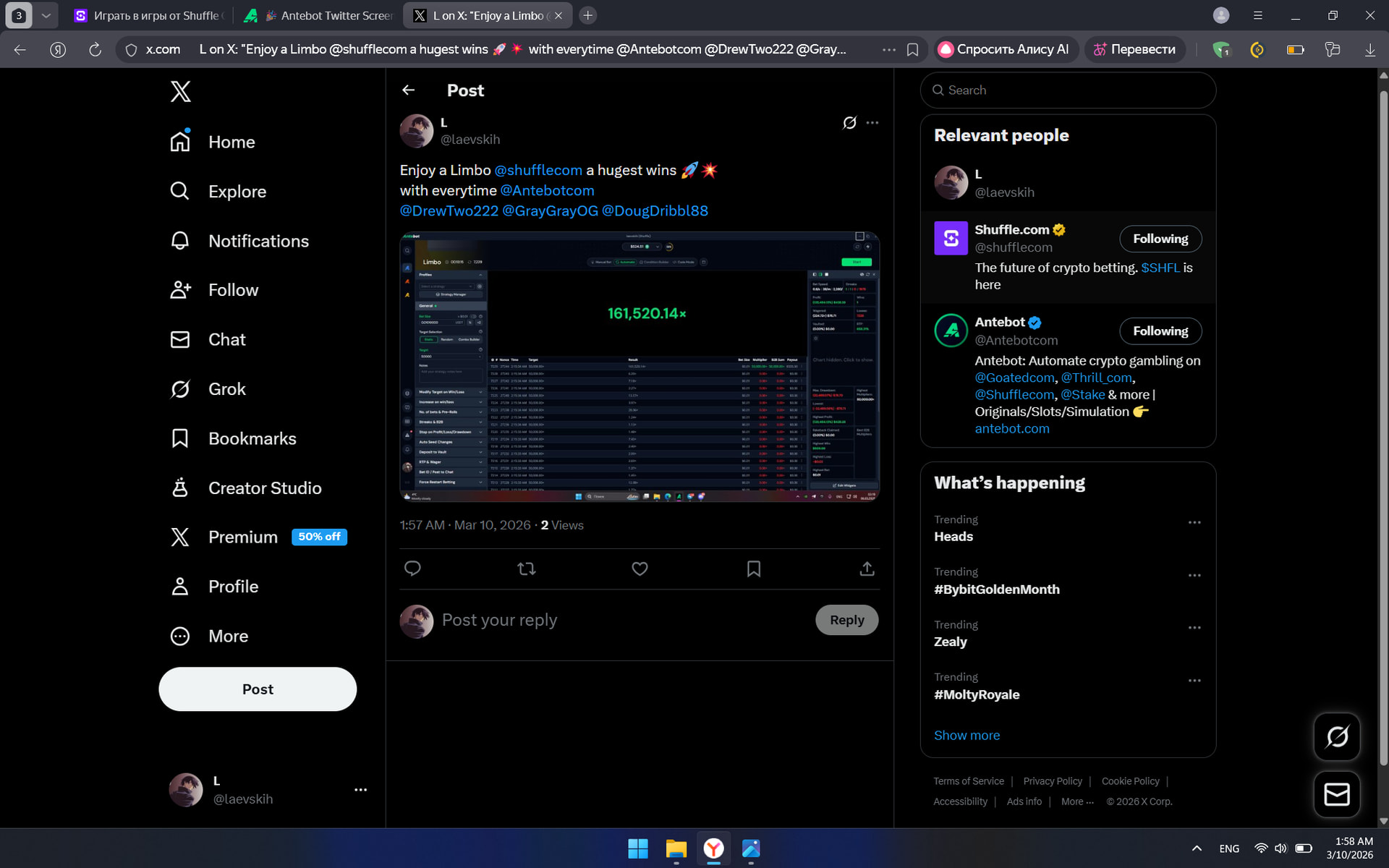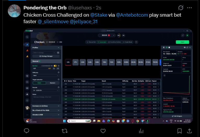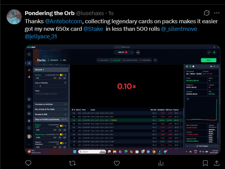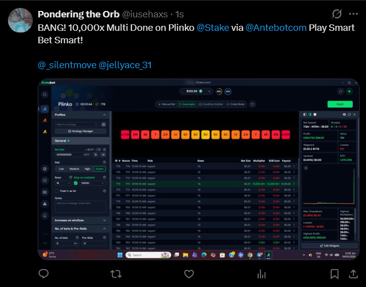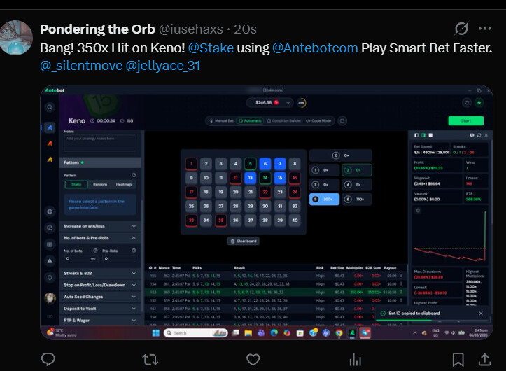 Needs to be an screenshot of the win with Antebot.