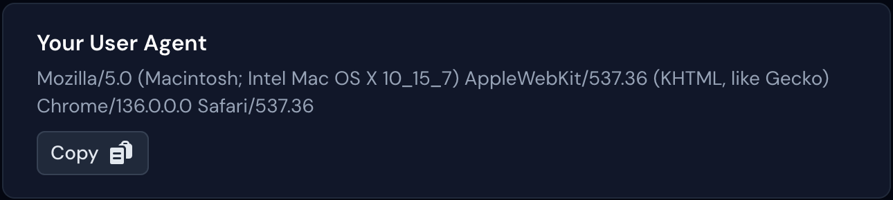 Open https://antebot.com/user-agent/, copy the User Agent and paste it in the User Agent input field in the app.